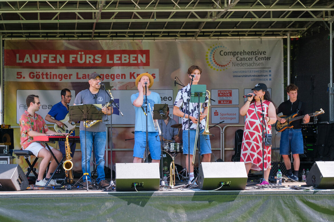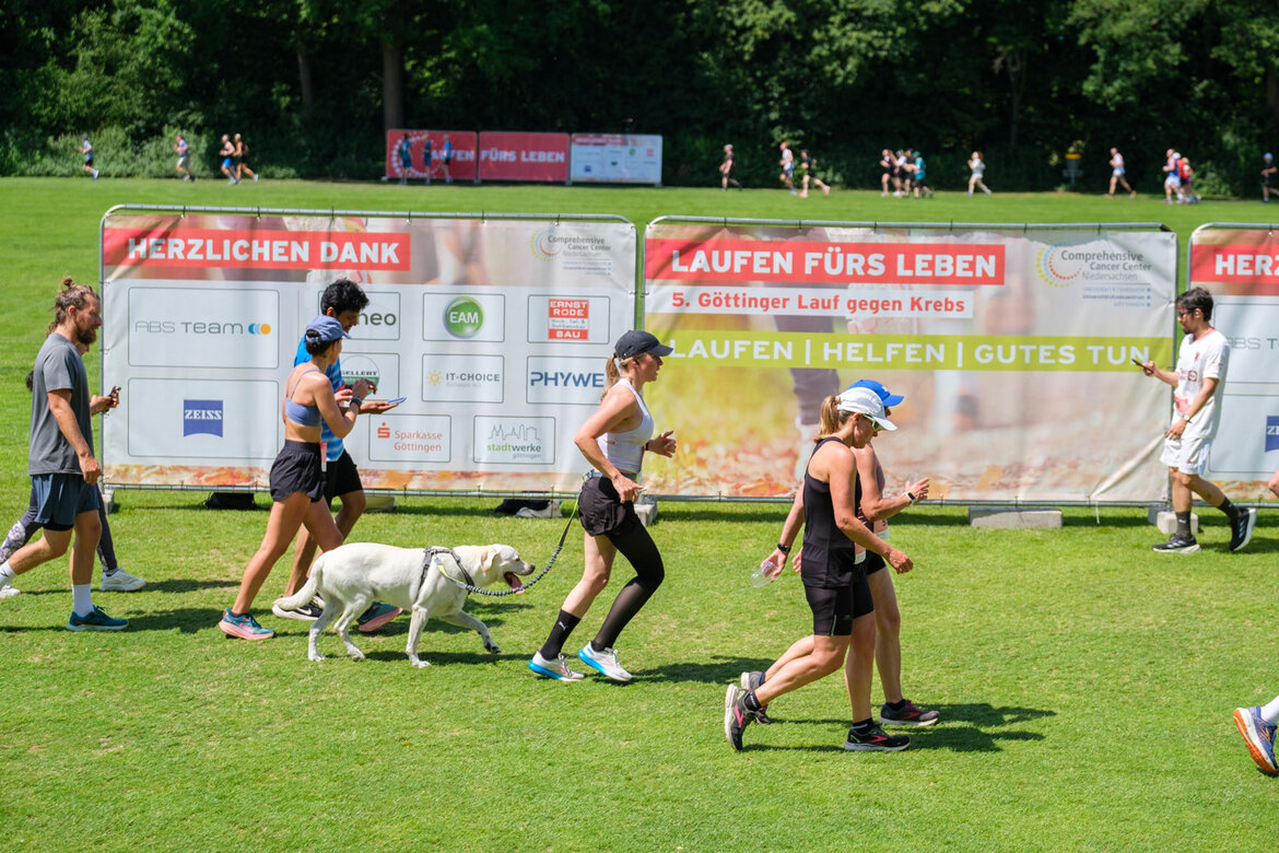 Der 5. Göttinger Lauf gegen Krebs war ein voller Erfolg: Trotz hochsommerlichen Temperaturen von bis zu 35 Grad drehten am heißesten Tag des Jahres rund 2.000 große und kleine Läufer*innen auf dem Gelände des Hochschulsports Göttingen ihre Runden – für den guten Zweck, für Bewegung und für mehr Unterstützung für Menschen, die an Krebs erkrankt sind. Das Ergebnis: 21.039 Runden – davon 124 im Online-Lauf vorab – und ein neuer Spendenrekord von rund 24.500 Euro. Diese Einnahmen aus Spenden und Sponsoring kommen unterstützenden Angeboten für Krebspatient*innen am UniversitätsKrebszentrum der Universitätsmedizin Göttingen (UMG) zugute. Zu den Angeboten gehören z.B. Musik- und Sporttherapie, Ernährungsworkshops, Kosmetikseminare oder die Begleitung durch die Breast and Cancer Care Nurse. Oftmals werden diese Angebote nicht von der Regelversorgung finanziert.