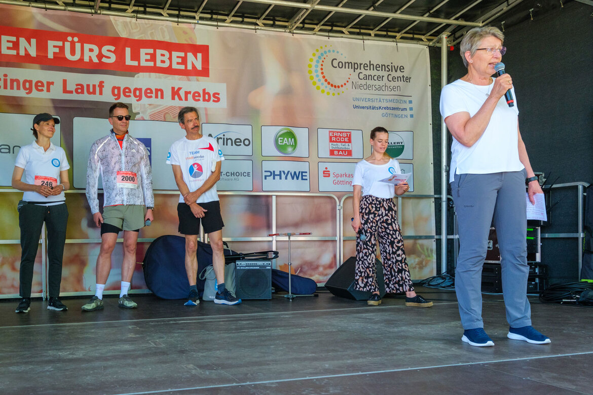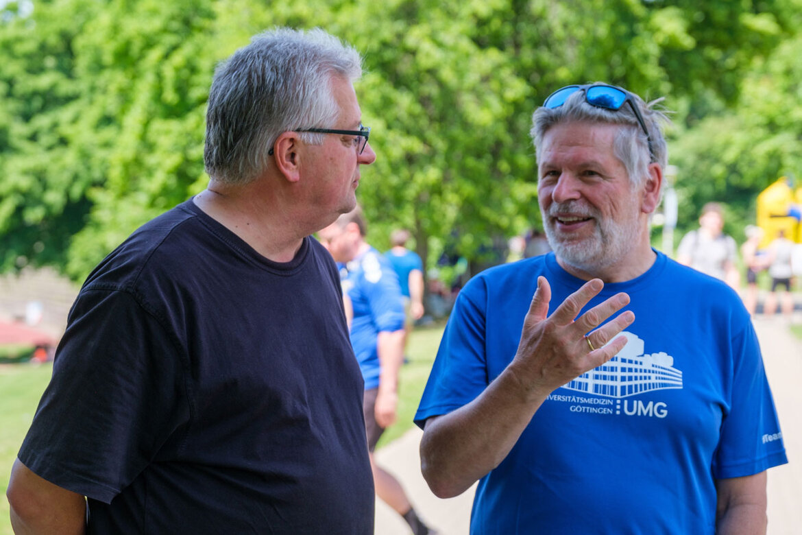 „Bei über 30 Grad über 21.000 Runden zu laufen – das ist eine enorme Leistung aller Läufer*innen, die den Tag zu einem ganz besonderen Event gemacht haben! Und das nicht nur für viele Mannschaften, Teams und zahlreiche Mitarbeiter*innen der UMG, sondern auch für zahlreiche ehemalige oder auch derzeitige Patient*innen oder deren Angehörige sowie Familien, die beim Lauf selbst am Start waren. Das Ergebnis des Laufs hat unsere Erwartungen weit übertroffen und zeigt, wie stark die Solidarität in unserer Region ist“, sagt Prof. Dr. Rieken, Sprecher des UniversitätsKrebszentrums Göttingen (G-CCC). „Wir möchten uns bei allen ehrenamtlichen Helfer*innen, allen voran aus den Fachschaften Medizin und Sport, sowie bei allen Sponsor*innen und Unterstützer*innen ganz herzlich bedanken, die dieses Event erst möglich gemacht haben – und natürlich gilt unser Dank allen Läufer*innen und Spenderinnen, die mit ihrem Einsatz diesen neuen Spendenrekord erzielt haben.“