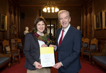(umg) Prof. Dr. Jutta Gärtner, Direktorin der Klinik für Kinder- und Jugendmedizin der Universitätsmedizin Göttingen, hat heute, am Freitag, dem 8. November 2019, im Hamburger Rathaus vor über 100 geladenen Gästen den Hamburger Wissenschaftspreis 2019 „Angeborene seltene Erkrankungen“ verliehen bekommen. Die Akademie der Wissenschaften in Hamburg zeichnet damit ihre bahnbrechenden Arbeiten auf dem Gebiet der seltenen angeborenen neurometabolischen Erkrankungen im Kindes- und Jugendalter aus. Der mit 100.000 Euro höchstdotierte Preis einer deutschen Wissenschaftsakademie wird gestiftet von der Hamburgischen Stiftung für Wissenschaften, Entwicklung und Kultur Helmut und Hannelore Greve.